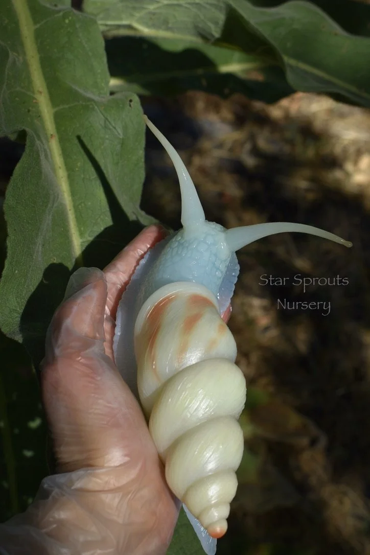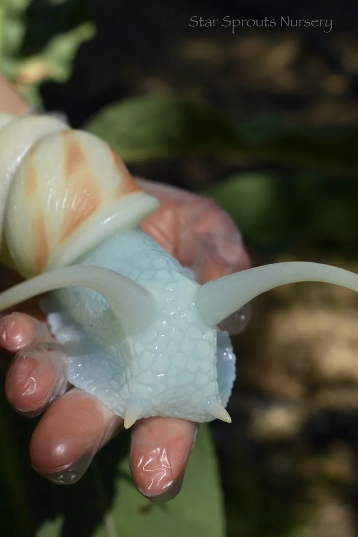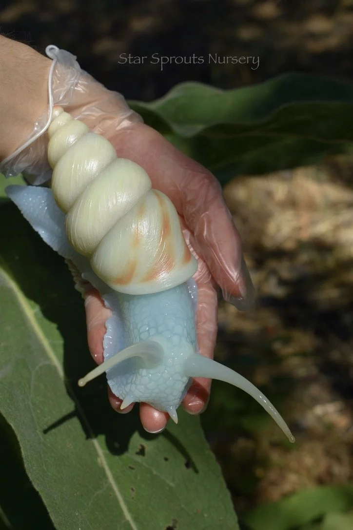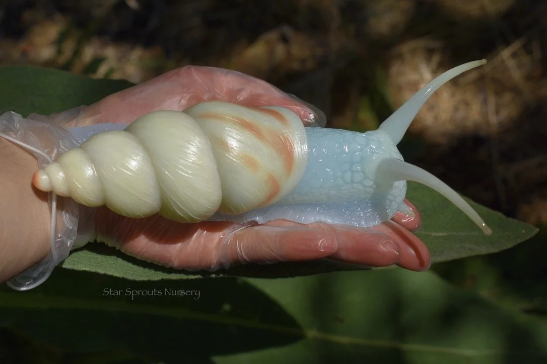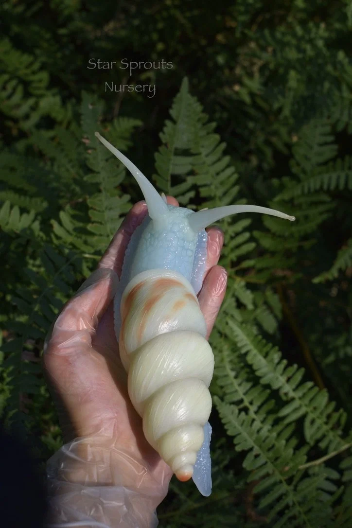 Ulysses is a soft silicone snail, made to resemble the beautiful living Green Tree Snail (Amphidromus sylheticus) shown in the first photo.